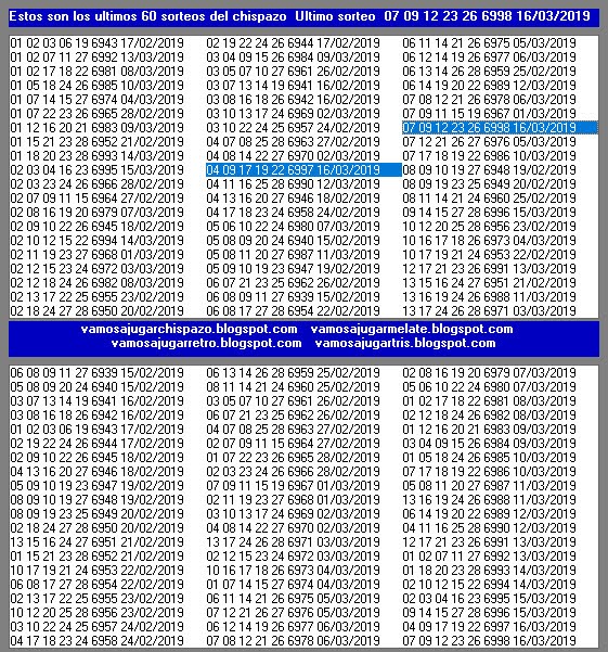 Resultados del CHISPAZO,al día checa como han salido,y analiza tu próxima combinación " Suerte "